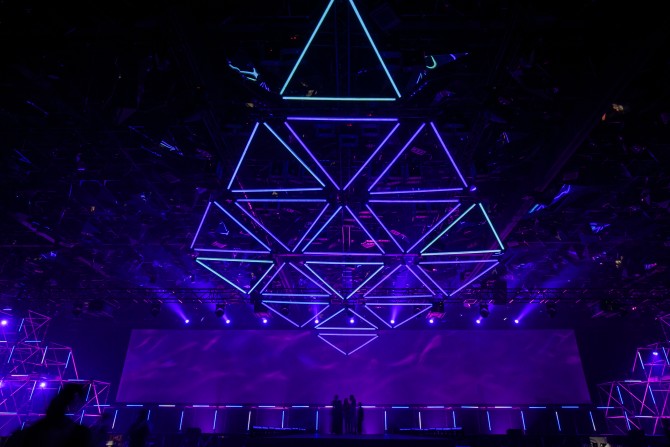 It was important for us to create an immersive experience for guests to ensure a long-lasting impact and meet the requirements of the brief: reward employees’ accomplishments, feed their interest in innovation and spark plenty of big ideas amongst the collective. We were heavily involved in consultation throughout the content creation process to deliver a setup with the environment and scale in mind. There was a great deal of care taken in designing several elements that worked simultaneously throughout the events. For the Gala Dinner, we created a kinetic lighting installation as the hero piece; a showstopper. To achieve a seamless and engaging experience, our concepts and ultimate delivery saw the connection of an audio track score and choreographing performance, matched to the sound effects used to open the show.